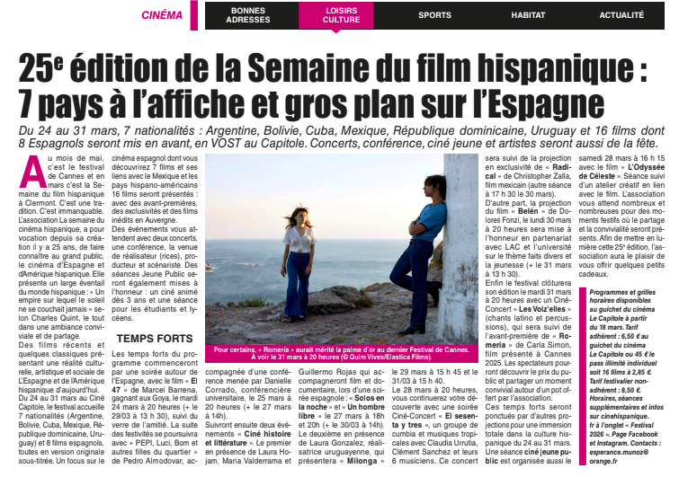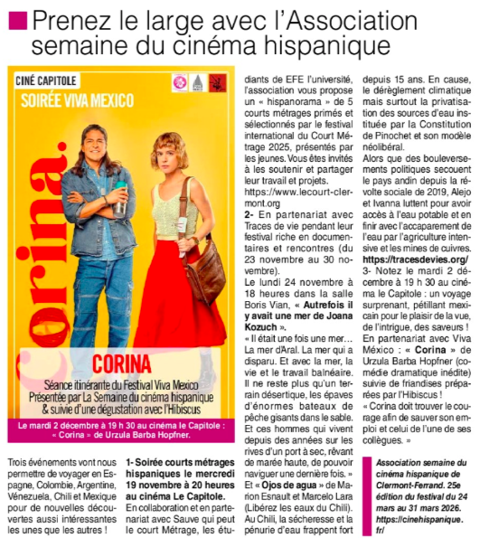 Clermont Infos 63 n°1832 : Prenez le large avec l’association Semaine du Cinéma hispanique