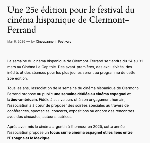 Clermont Infos 63 : Le cinéma hispanique se refait une toile