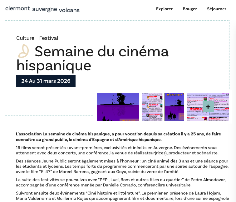 Clermont Auvergne Volcans : Semaine du cinéma hispanique