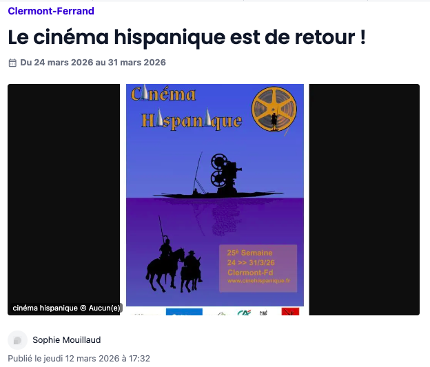 Clermont Infos 63 : L’association Ciné Hispanique de Clermont-Ferrand fait sa rentrée
