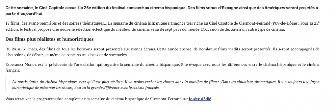 Ici Pays d’Auvergne : Le cinéma hispanique est de retour !